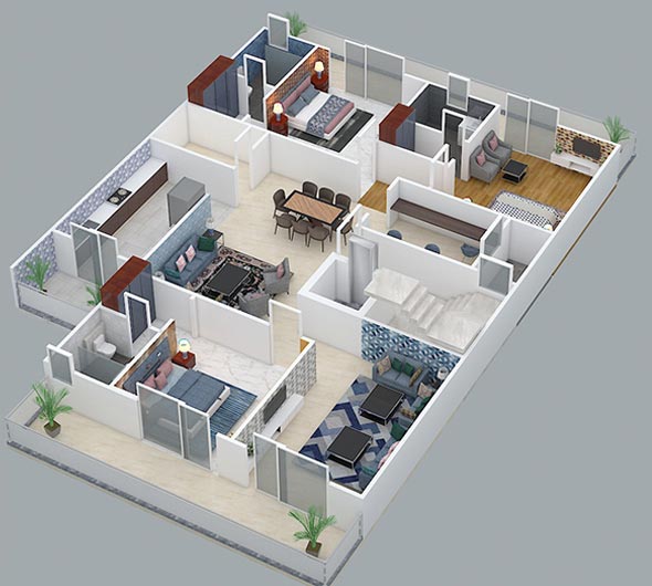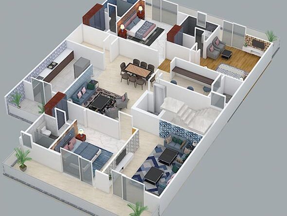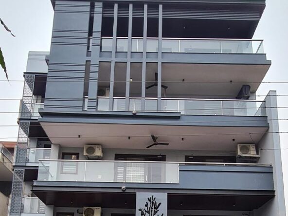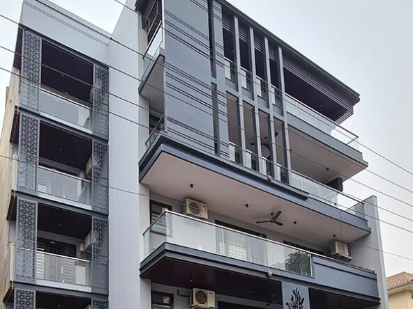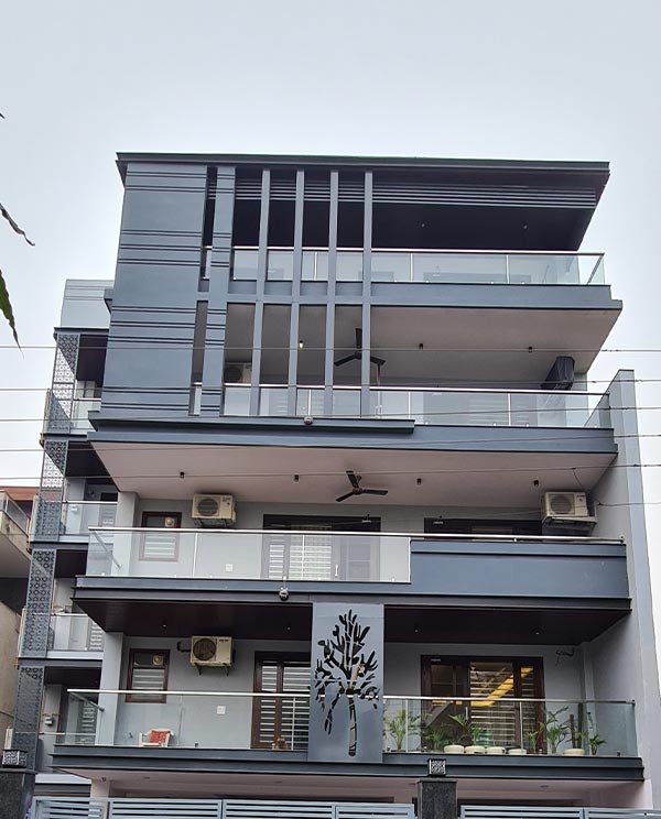 This project is located in faridabad. The project is built on a 350 sq.yards plot. The plot is situated on a 10 meter wide road east with back of main road. The commercial market of sector is nearby of house just 10 minutes walking distance. The house includes stilt parking with four floors with lift facility. The floors have a single unit on each floor having 3 bedrooms with attached toilets, one kitchen, one drawing room, one dining room, one maid room, service balcony and a leisure balcony. The house has been designed with green building parameters which made to be healthier for the residents. The planning is for maximum use and low maintenance. The stilt parking of this home can easily accommodate 8 cars. Each floor has 2 reserve parking from other floors of building which means no interference from the neighbor’s related car parking issues. Each floor is independent in terms of service and parking. This project just 3km away from Bata Chowk metro station.