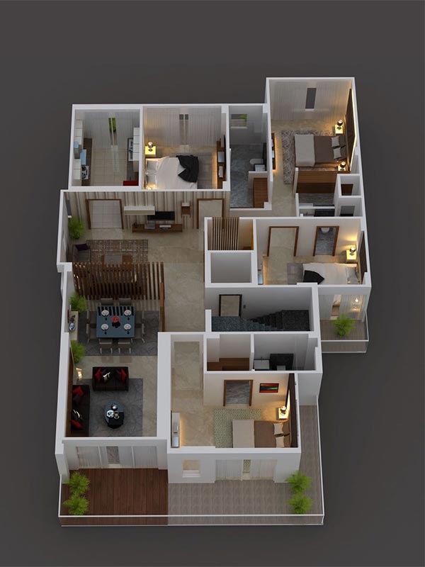 The planning is for maximum use and low maintenance. The stilt parking of this home can easily accommoda te 8 cars. Each floor has 2 reserve parking from other floors of building which means no interference from the neighbours rela ted car parking issues. Each floor is independent in terms of service and parking