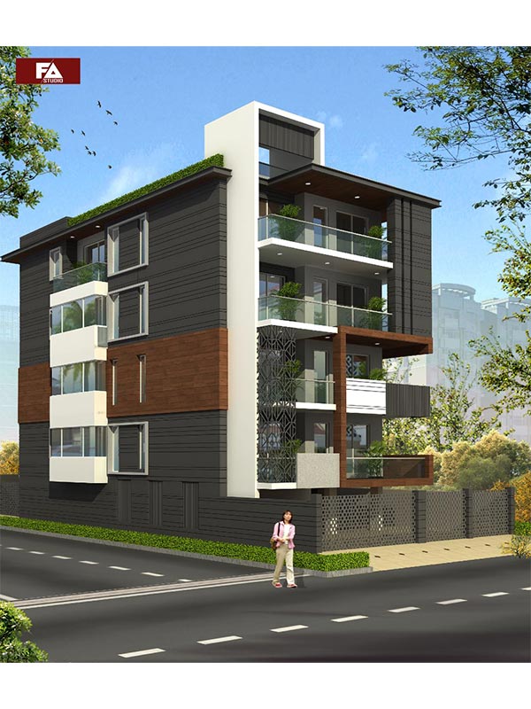 This project is located in sector 21C locality of faridabad. The project is built on a 350 sq. yards plot.The plot is situated on a 15 meter wide road facing south with.Also this property is situted on corner side of lane which makes its exterior elevation very trunky. The famous ASIAN INSTITUTE OF MEDICAL SCINCE AND CANCER CENTER of sector 21 is situted nearby the house. Also the commercial market of sector 21 c is just on 5 minuts walking dis tance from the house. The house includes stilt parking with four floors with lift facility .The floors ha ve a single unit on each foor having four bedrooms with at tached toilets, one kitchen,one drawing room,one dining room,a service balcony and a leisure balcon y .The house has been designed with green building parameters which made to be healthier for the residents.