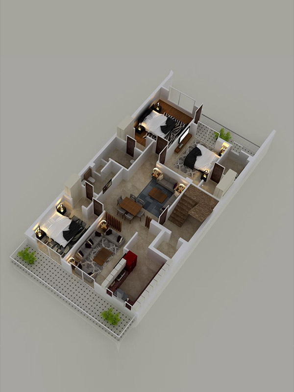 This project is located in sainik colony locality of sector 49 in faridabad. The project is built on a 250 sq.yards plot.The plot is situated on a 10 meter wide road facing south.The commercial market of Sainik colony is nearby of house just 2 minutes walking distance.The house includes stilt parking with four floors with lift facility.The floors have a single unit on each floor having three bedrooms with attached toilets, one kitchen,one drawing room,one dining room,a service balcony and a leisure balcony.The house has been designed with green building parameters which made to be healthier for the residents.